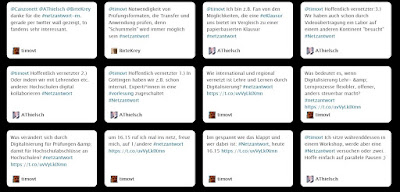 Danach: Ein Workshop mit Ralf (Steffen) und mir dazu, wie elektronische Prüfungen kompetenzorientiert mehr als MC sein können (aber nicht immer  was anderes als MC dazu sein müssen). Der Workshop zeigte mir auch wieder mal, wie kreativ Prüfungen (und der Lehr- und Lernweg dorthin) umgesetzt werden können und wie spannend dann eine wirklich valide Prüfungskonstruktion in ihrer Ausgestaltung ist (die wir gerne nach den Impulsen im Workshop im Team an der TH weiter unterstützen). Zeitgleich Workshops von Claudia (Bremer) und Birgit (Szczyrba) zu sozialem Lernen, sowie Jöran (Muuß-Merholz) und Susanne (Glaeser) zu OER.