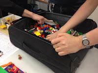 Schrank mit Kreativitätswerkzeugen (Kartenspiele, Legosteine, Thinkertoys)